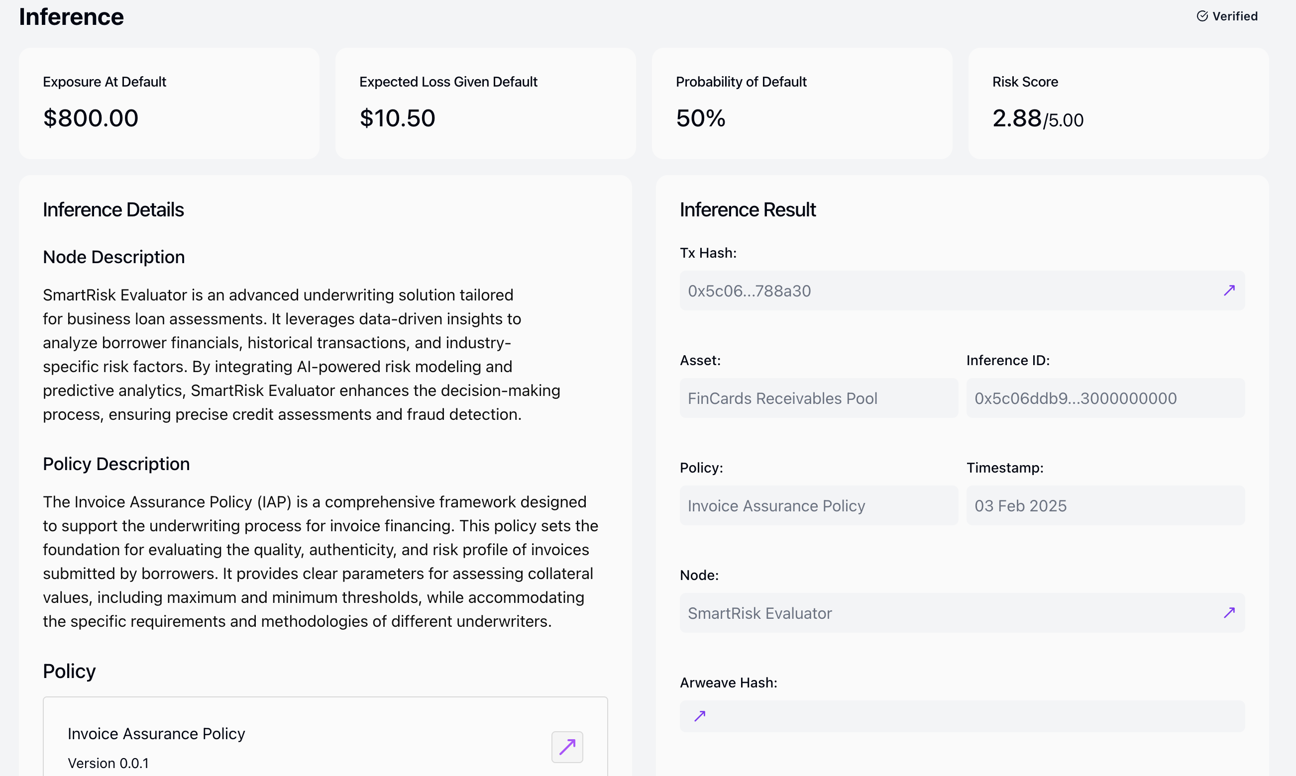 1. On-chain verification: Every inference will be attached a transaction hash for on-chain verification.