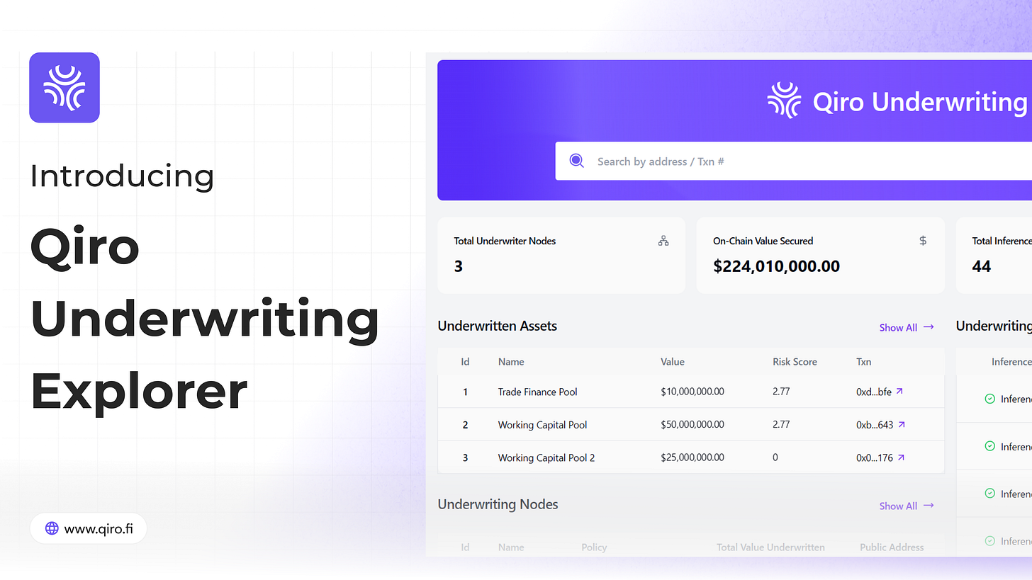 Before diving deep, we would definitely recommend reading this to understand how Qiro’s underwriting network work and why this explorer is a big unlock.