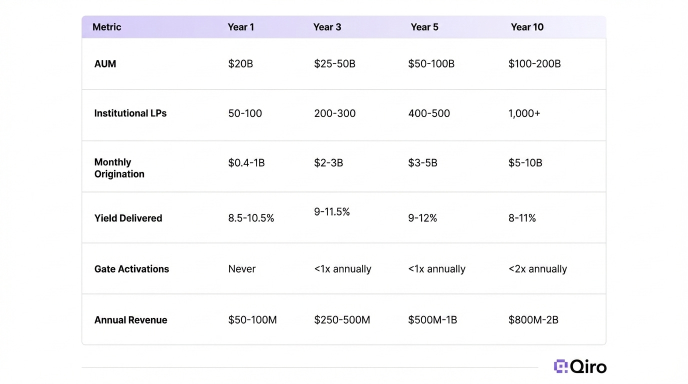 Once put into practice, we can visualize a 10-year North Star for the onchain credit sector, with a target AUM bracket of $100-200B.